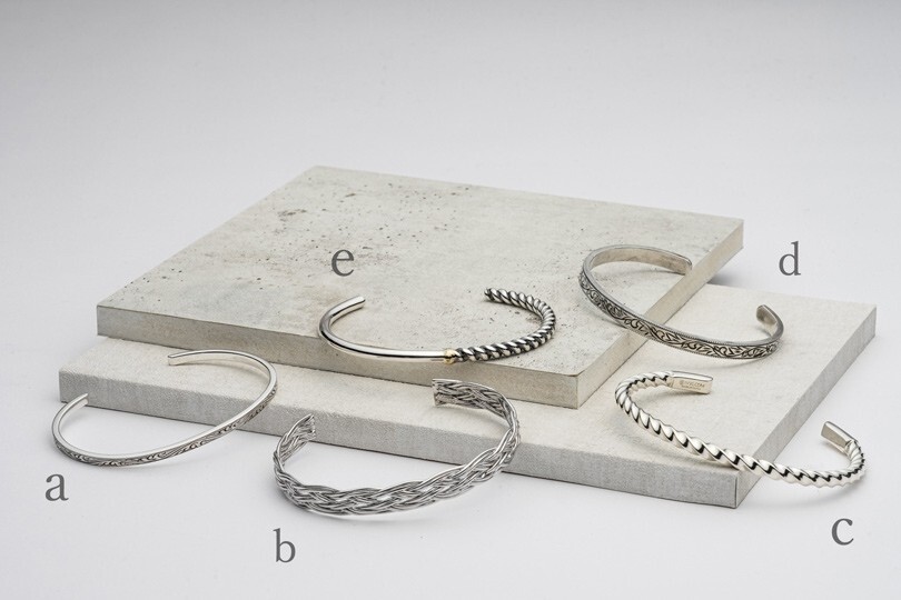 - 【手環】將金屬製作成「C」型,直接套入手腕的飾品。因為開口設計,尺寸選擇特別重要。