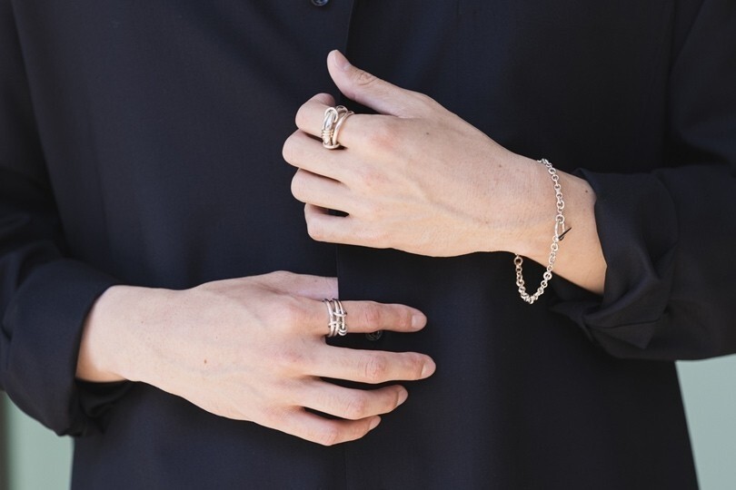 <SPINELLI KILCOLLIN/スピネリキルコリン>的戒指可跨指連結,同系列手鍊搭配起來低調卻很有品味。