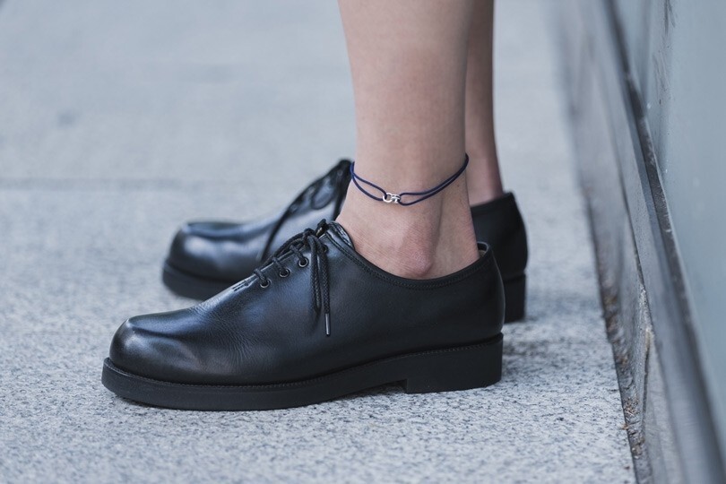 腳鍊不只適合涼鞋,搭配球鞋或皮鞋露出腳踝也很加分。
