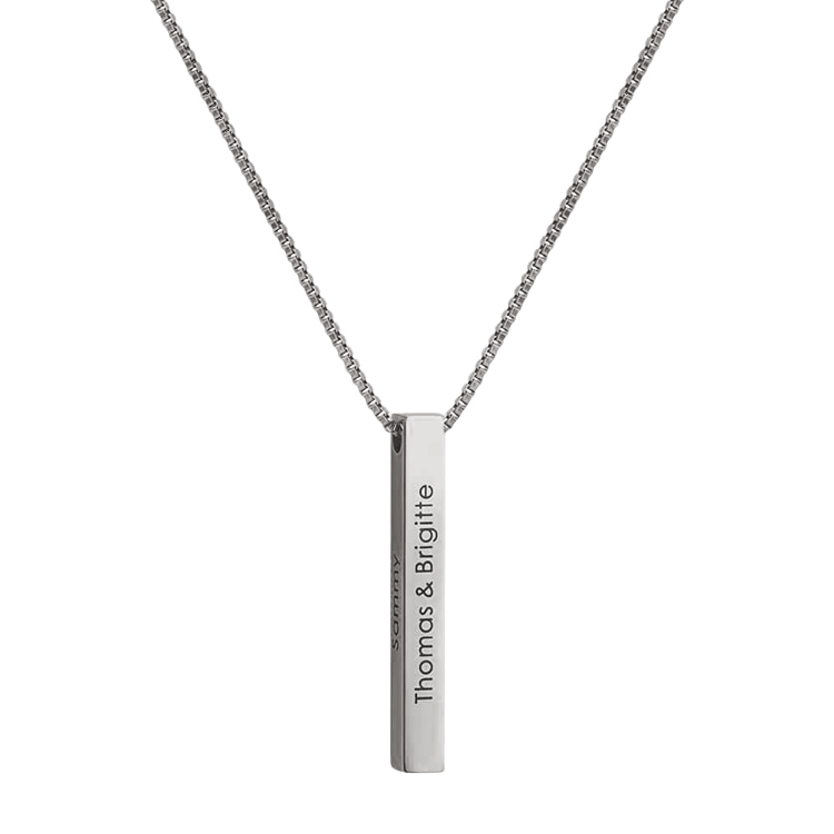 銀色〡純銀項鍊,女士項鍊 長條豎條項鍊;免費刻字附贈包裝(0034)