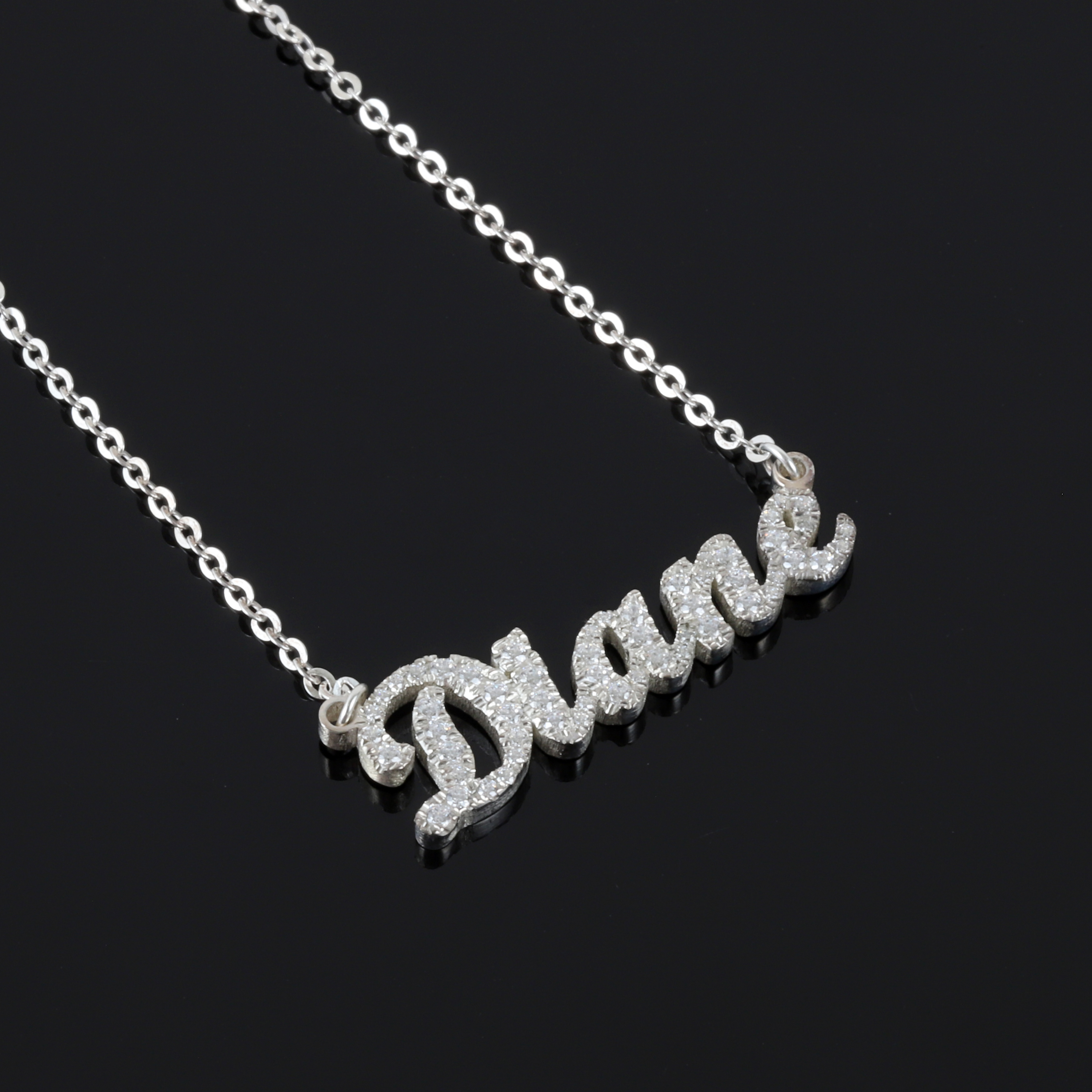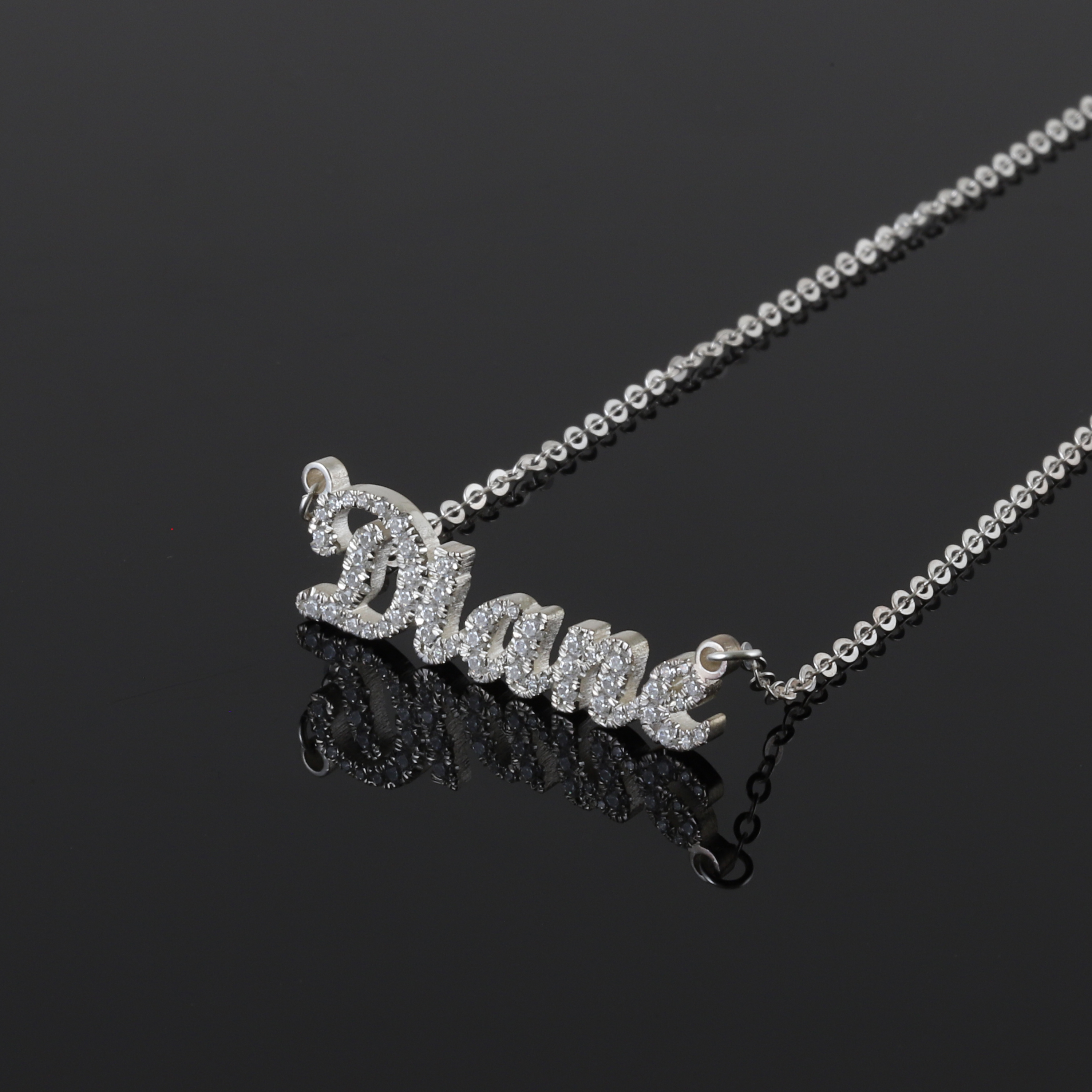 白金色〡英文姓名項鍊純銀客製化 鑲滿鑽;長度可客製化 紀念禮物(0025)