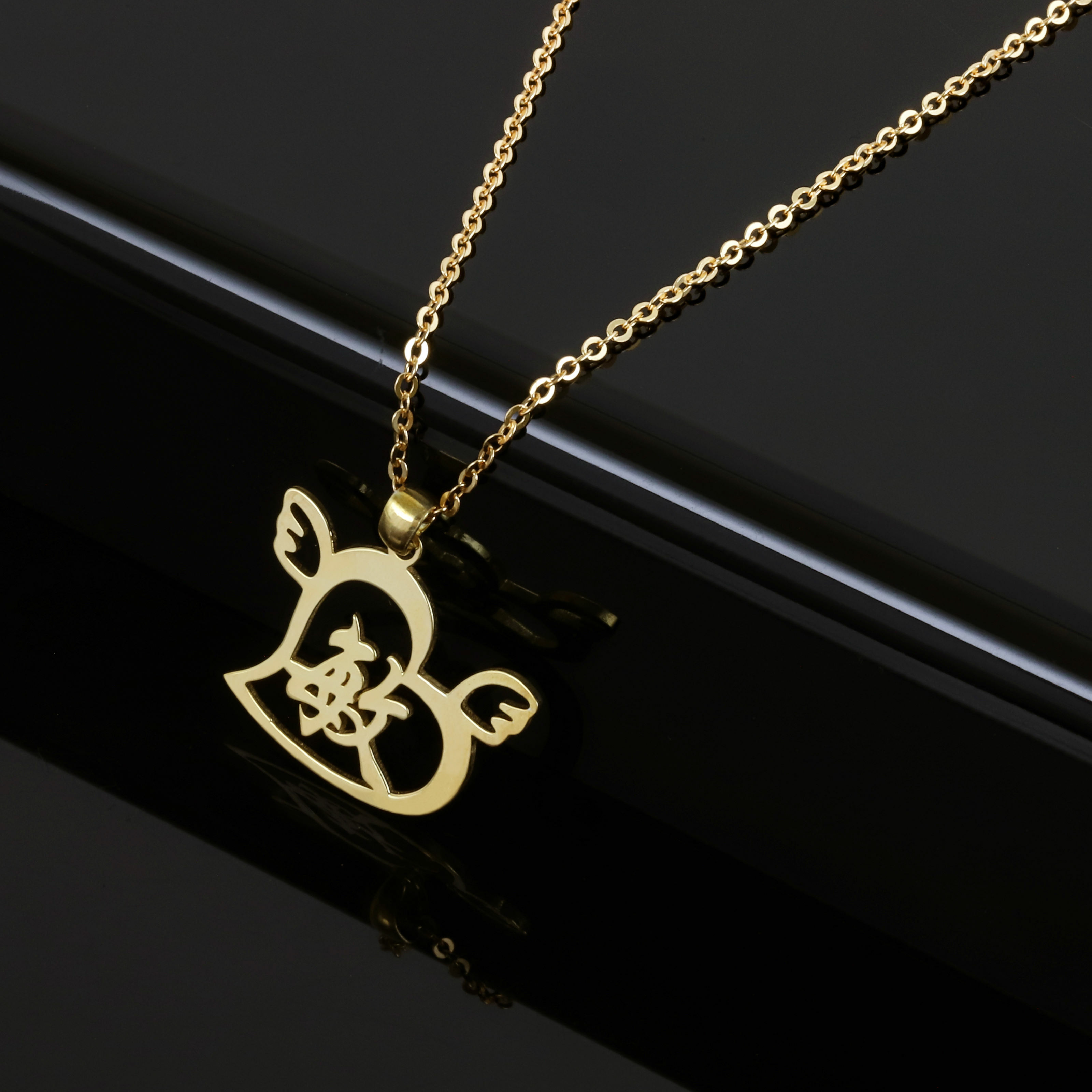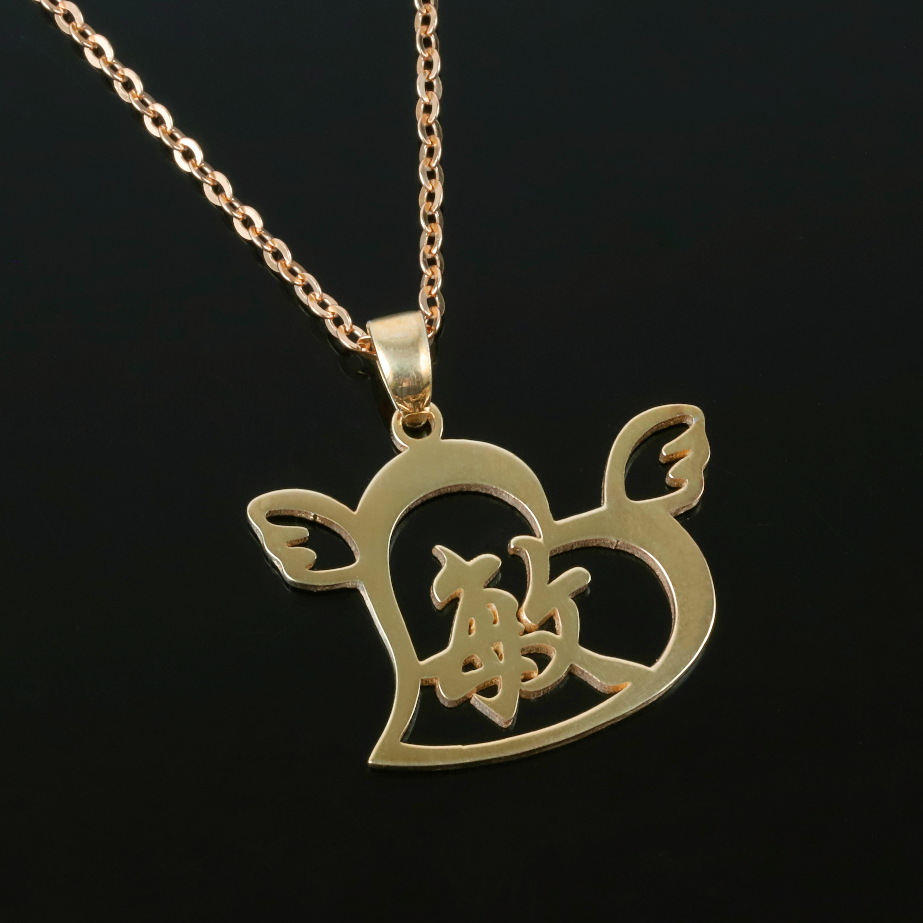 金色〡中文姓名項鍊純銀客製化 愛心天使翅膀 長度可客製化(0030)
