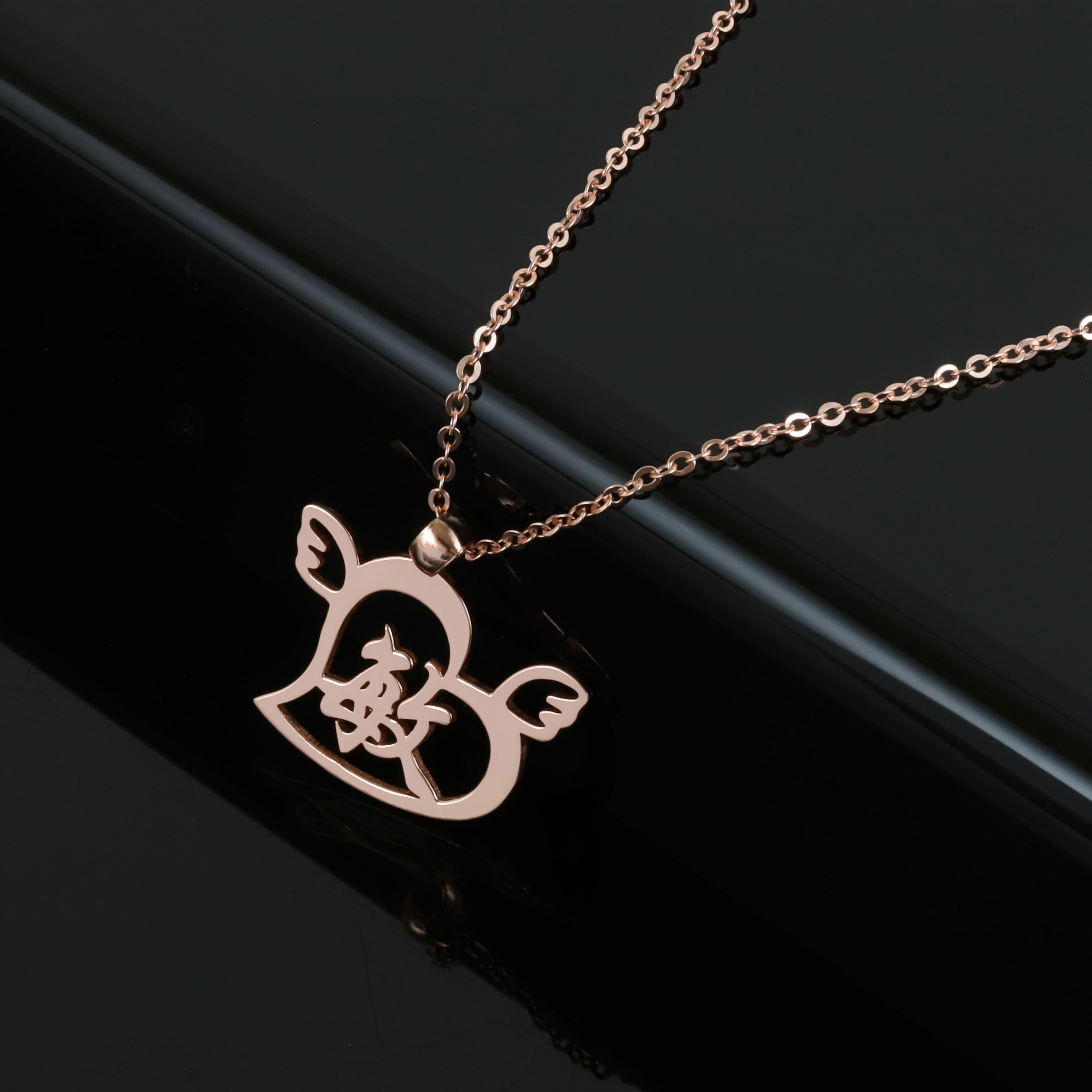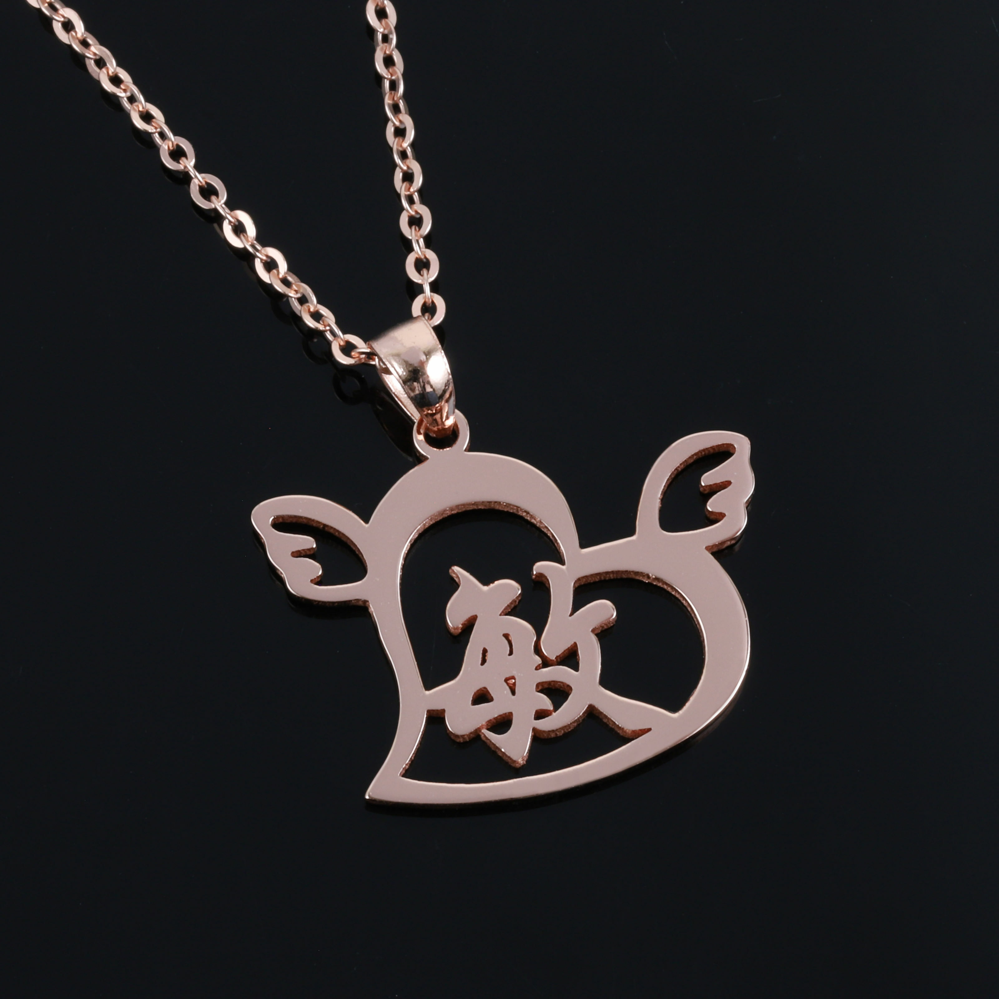 玫瑰金〡中文姓名項鍊純銀客製化 愛心天使翅膀 長度可客製化(0030)