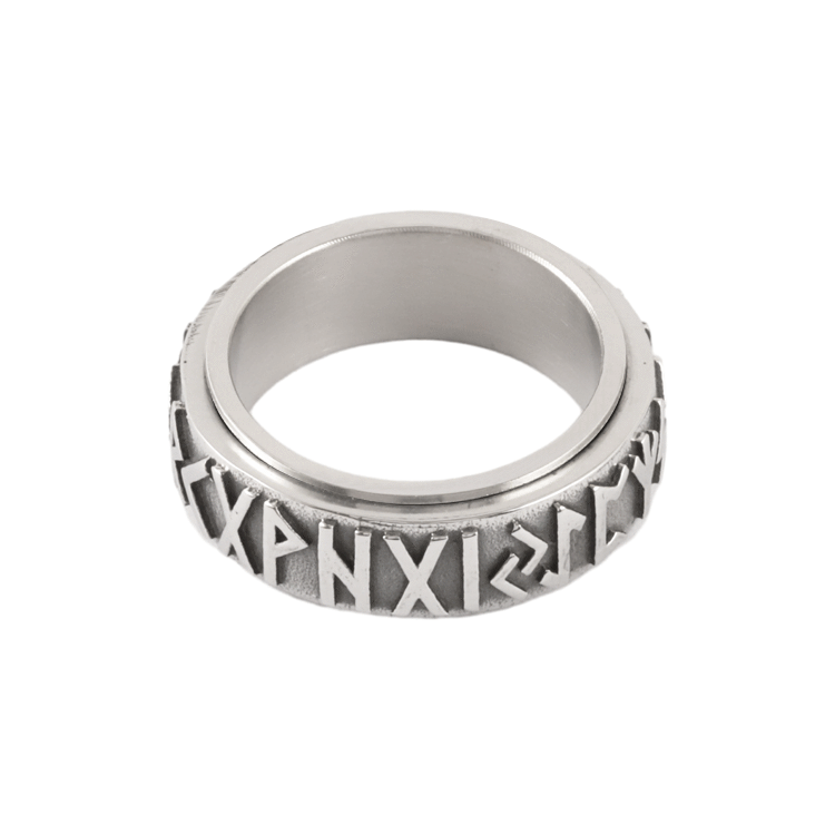 白鋼戒指,男士戒指 北歐盧恩字母符文;戒面可旋轉設計