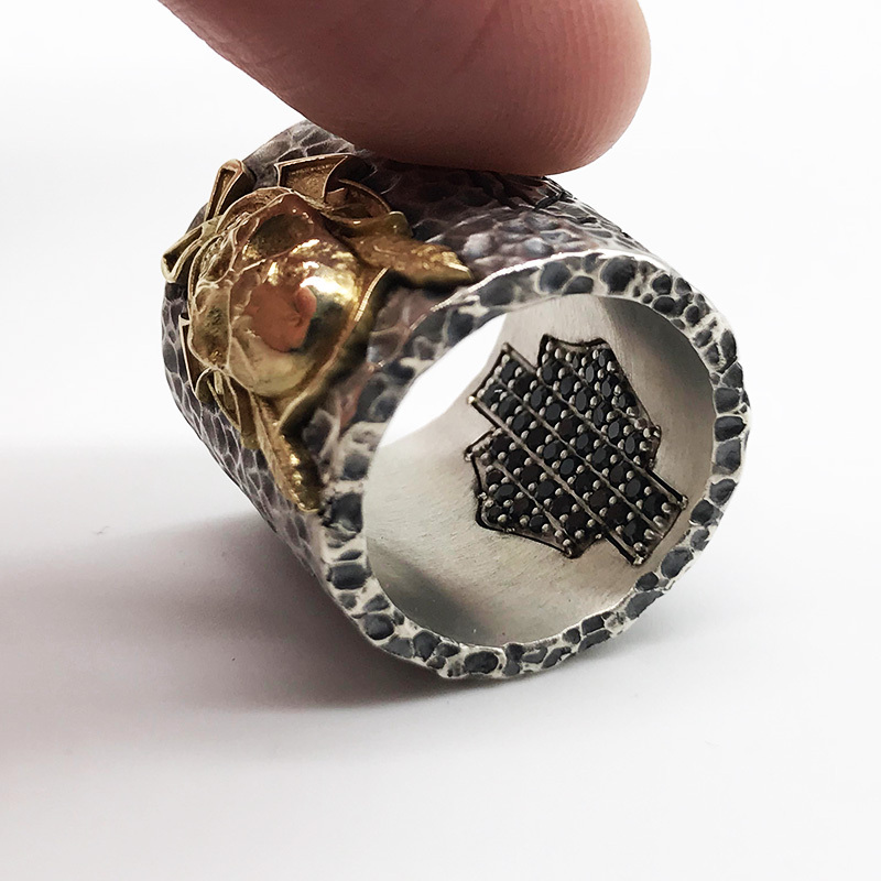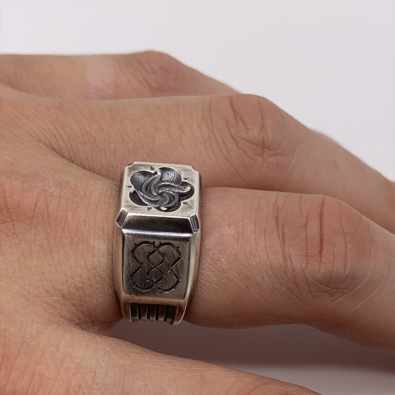 您可以在戒指正面、側面進行構想,或者您可以參考下方案例作品常見設計。我們會提供平面線稿,確認圖稿與完成付款後,我們進行開始製作。