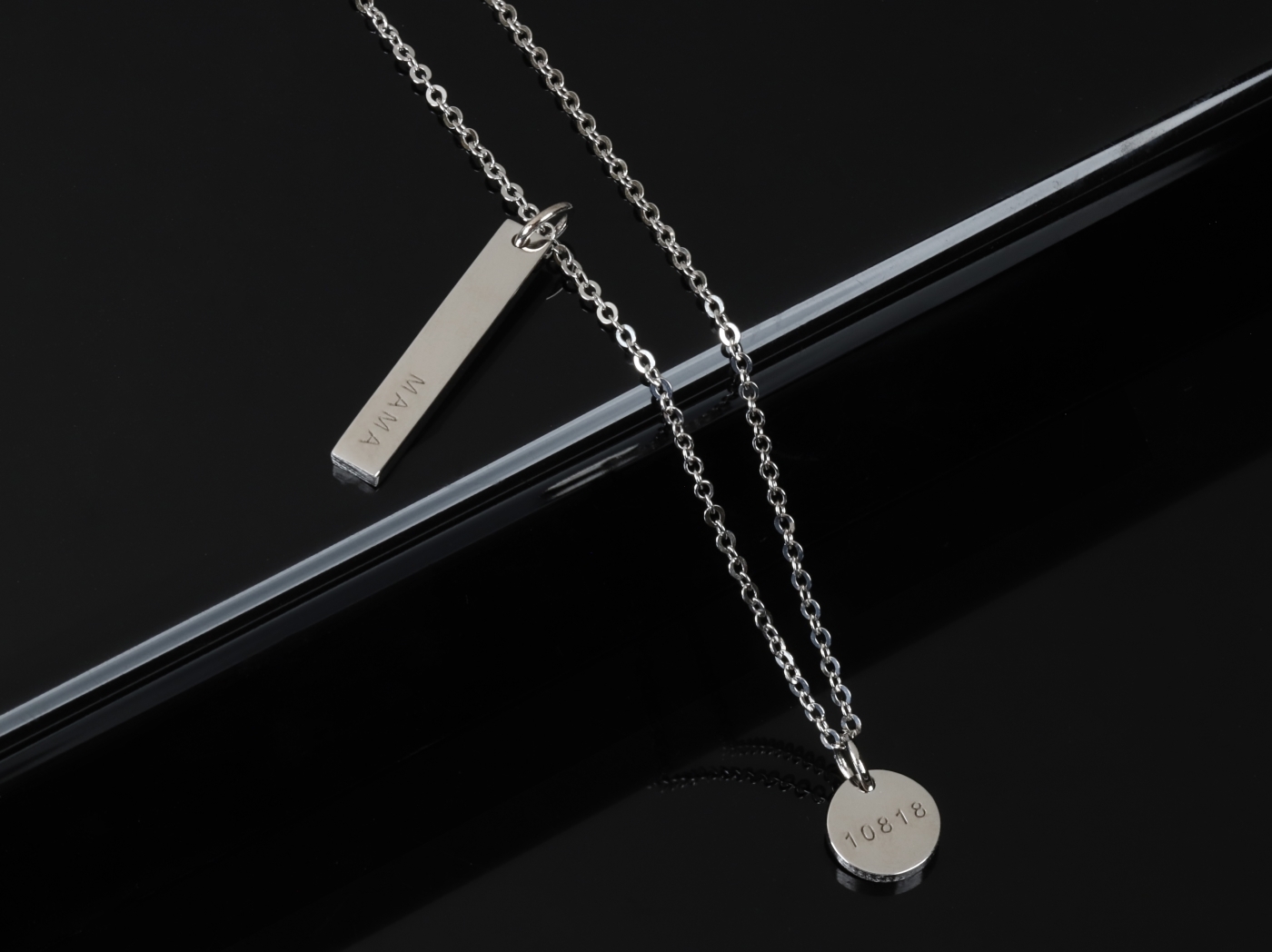 1. 材質採用國際標準S925純銀、圓形直徑9.5mm、長牌25.4mm*4.8mm、厚度2mm(相當於台幣拾元硬幣厚度)。顏色可製作銀色、白金色、金色、玫瑰金。